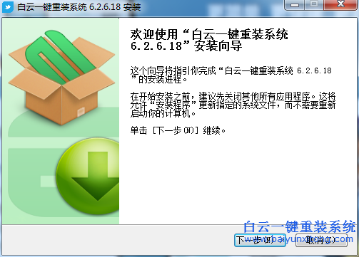 在眾多的重裝系統(tǒng)軟件之中,只有白云一鍵重裝系統(tǒng)軟件有純凈版的系統(tǒng)可以安裝,但是安裝純凈版有一個(gè)推廣驗(yàn)證,這個(gè)驗(yàn)證雖然比較簡(jiǎn)單,但是還是有些電腦小白不知道如何驗(yàn)證。所以今天白云就教大家白云純凈版系統(tǒng)怎么安裝。1、首先我們下載白云一鍵重裝系統(tǒng)軟件,然后將軟件安裝到電腦上面。