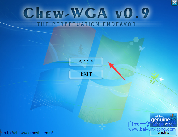 重裝系統win7 64位后系統沒有激活所用的,所以白云特別在網絡上搜集了這款GPT的win7激活工具,激活方式很簡單,退出殺毒軟件運行該激活工具,然后點擊“APPLY”按鈕即可。
