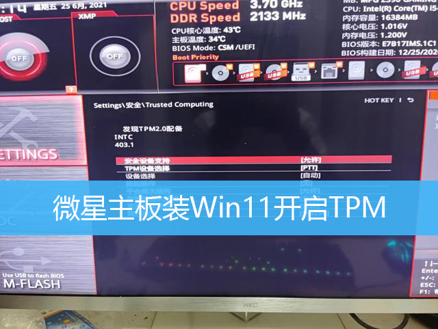 2021-06-28 微星主板,Win11,開啟TPM,TPM2.0