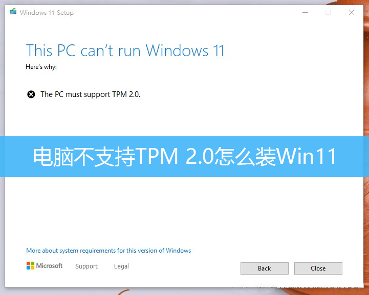 Win10升級安裝Win11的時候,如果電腦不支持TPM 2.0,會提示錯誤,但是有些用戶不知道自
