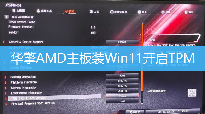 2021-06-26 華擎主板,AMD主板,Win11,開啟TPM