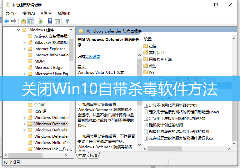 關閉Win10自帶殺毒軟件方法