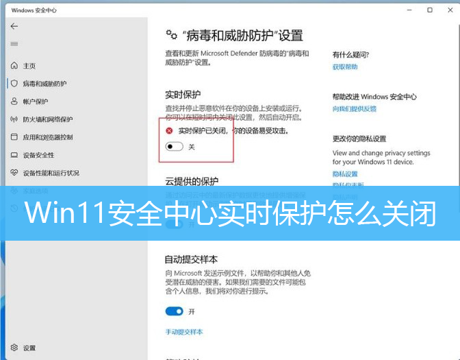 Win11安全中心實時保護怎么