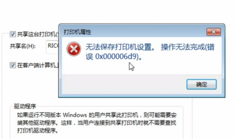 共享打印機提示0x000006d9錯