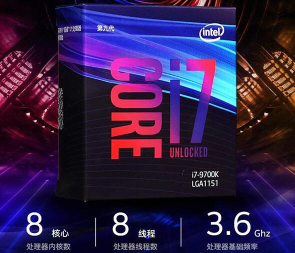 英特爾 九代酷睿i7系列中, 分別有i7-9700和i7-9700K兩款型號處理器,其中這兩個型號中還