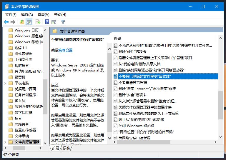 不做任何設置的情況下,刪除文件,會自動放在回收站,但是有些用戶不需要將刪除的