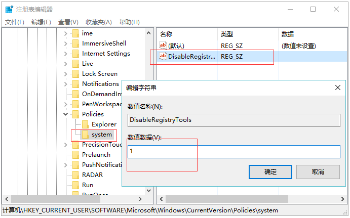 Win10修改DisableRegistryTools數
