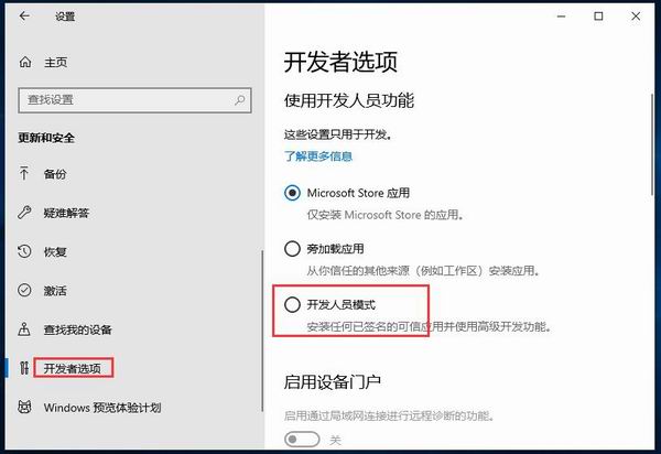 Win10中新增了開發者模式,該模式為win10技術預覽版,如果需要開發應用你需要開啟開發
