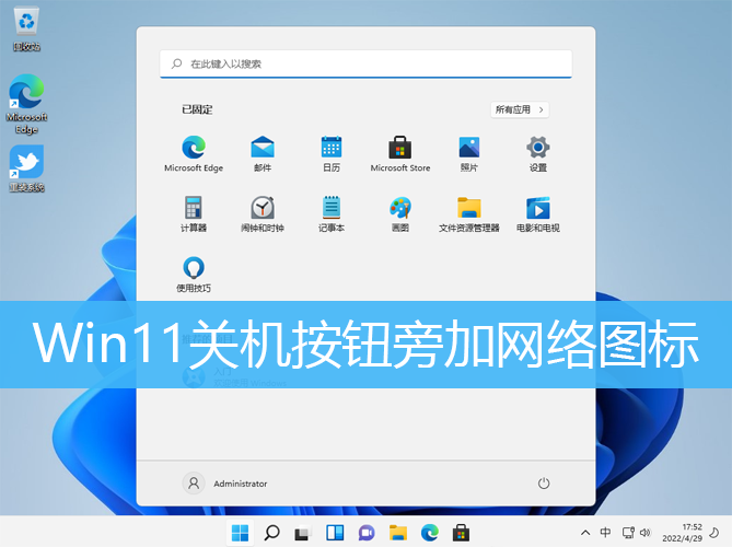 2022-06-13 Win11,關機按鈕,開始菜單,網絡圖標