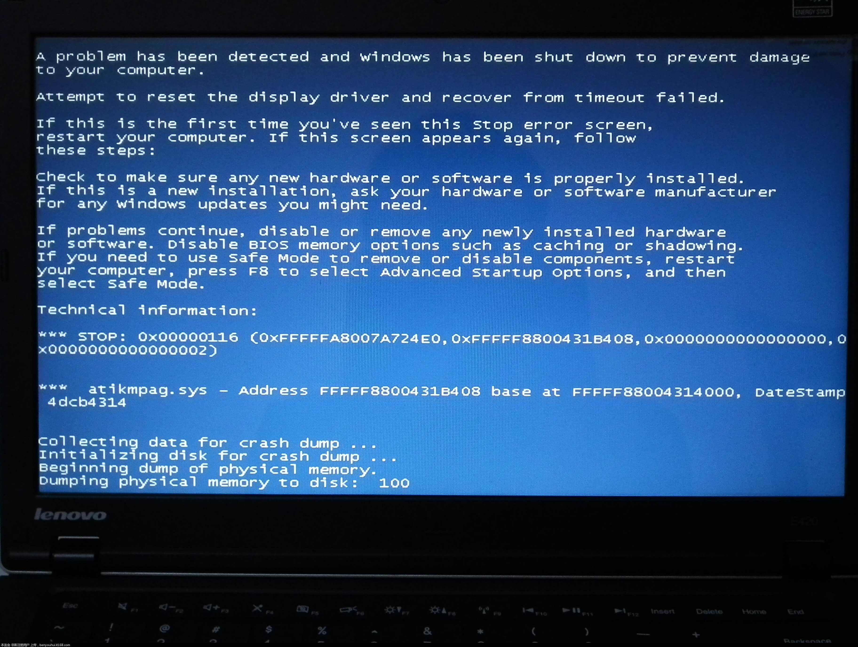 修復聯想ThinkPad藍屏死機后