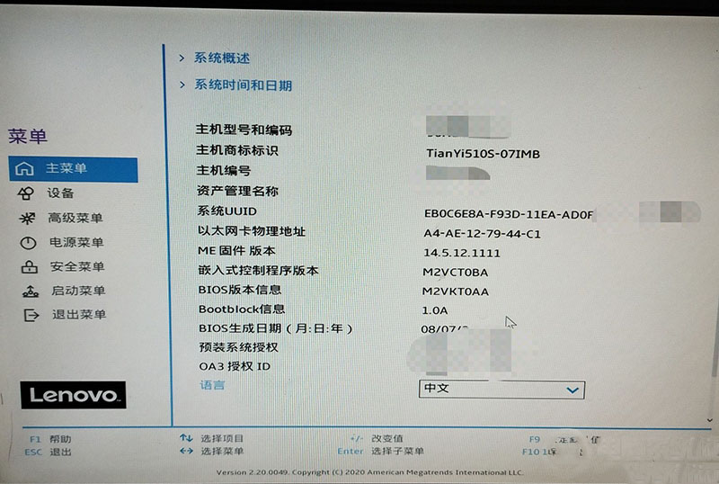 2020-03-26 聯想臺式機,Bios設置,安裝系統