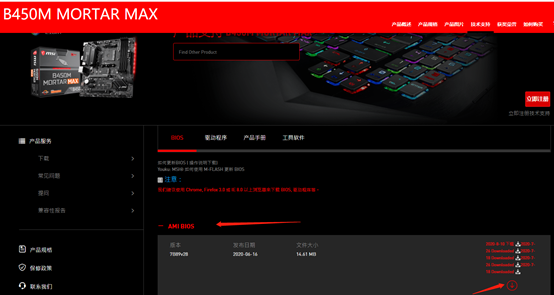 2020-11-12 微星主板BIOS,微星B450迫擊炮,升級BIOS