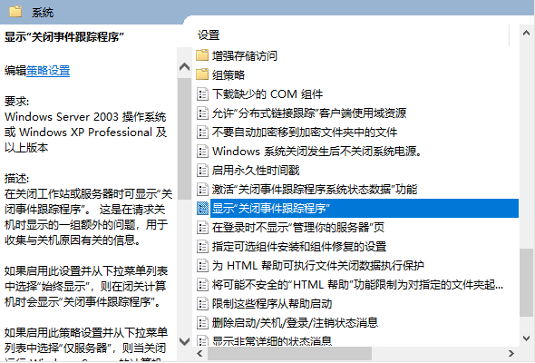 Win10的關閉事件跟蹤程序( 該程序則會記錄關機或重啟事件發生的原因,并將其反映在事