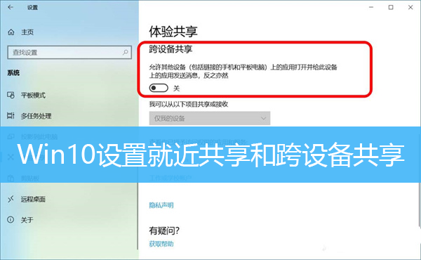 Win10體驗共享功能,可以在通知中心中查詢到就近共享和跨設備共享,打開之后,就可