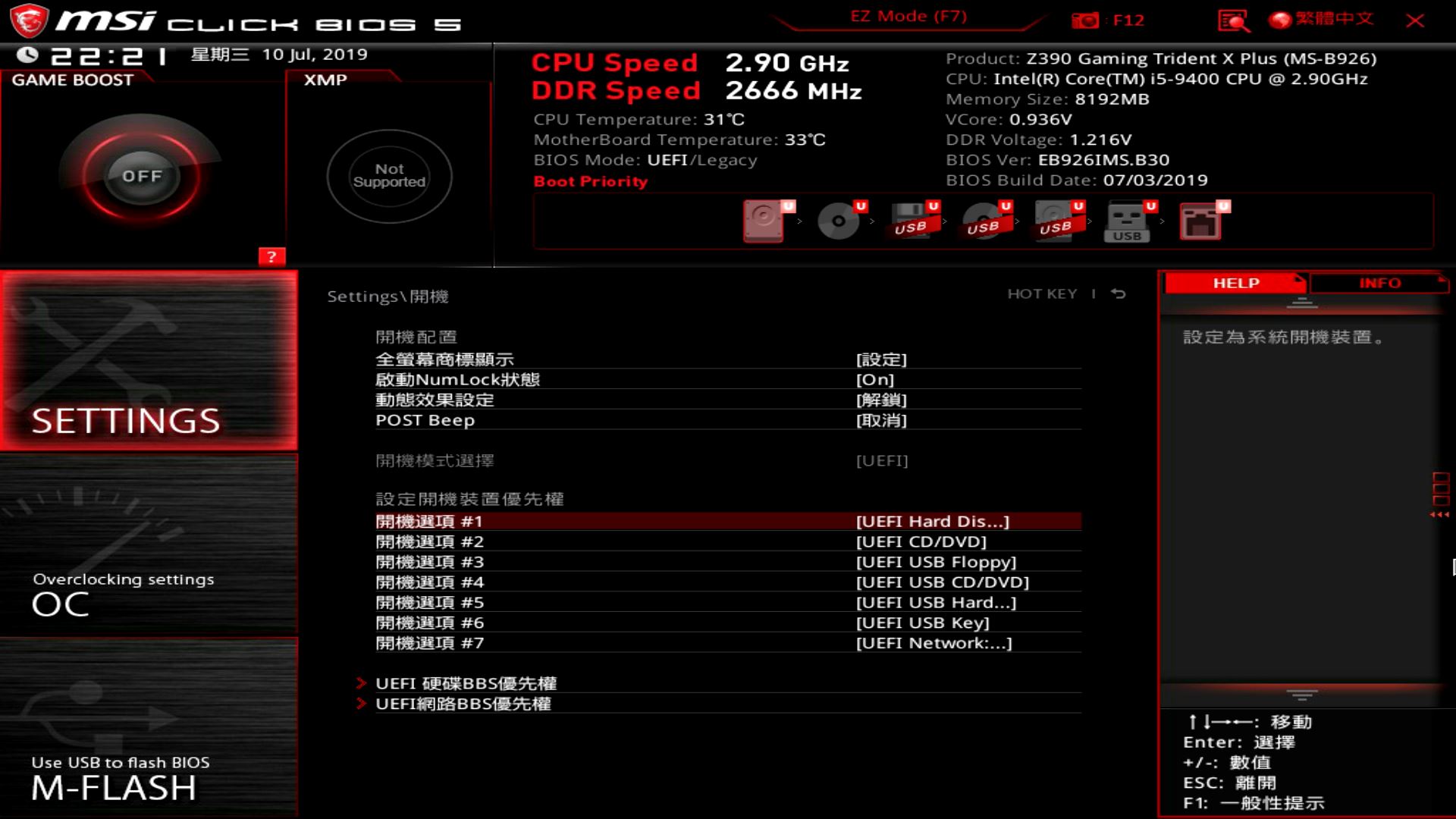2020-09-21 微星,Bios設置,Z390主板