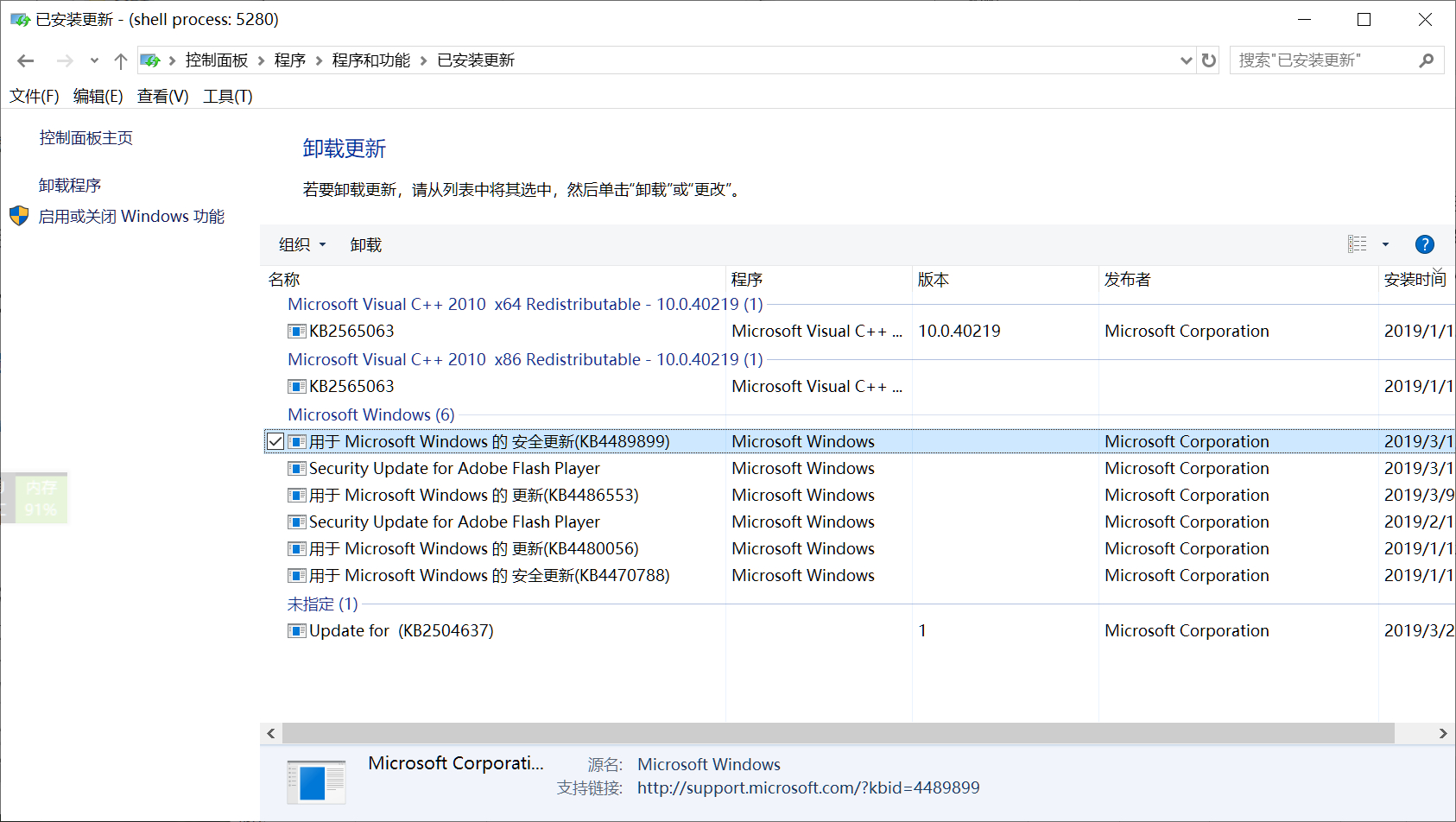 Win10 wusa命令卸載系統更新