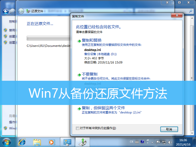 Win7從備份還原文件方法