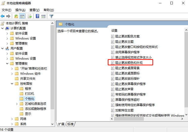 Win10阻止更改顏色和外觀