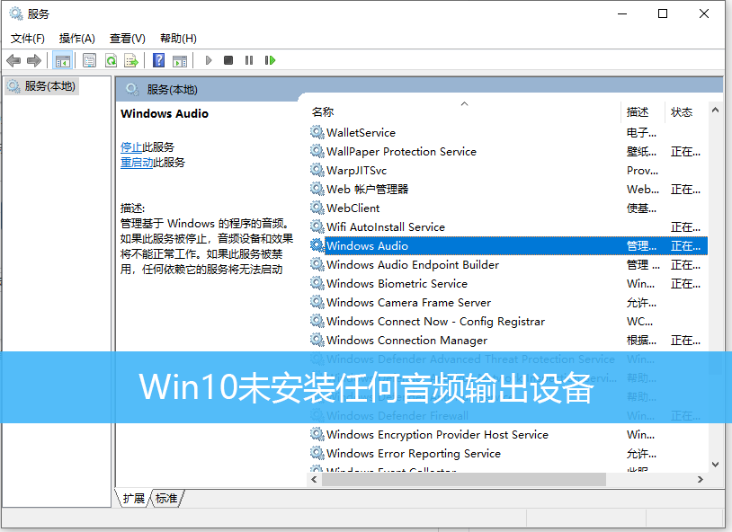 Win10電腦沒聲音,并且提示 未安裝任何音頻輸出設備,那么遇到這個問題應該如何解決