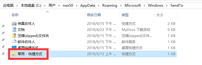 右鍵菜單中的發送到菜單項, 可以自定義發送位置,并 可以為它添加自己常用的文件