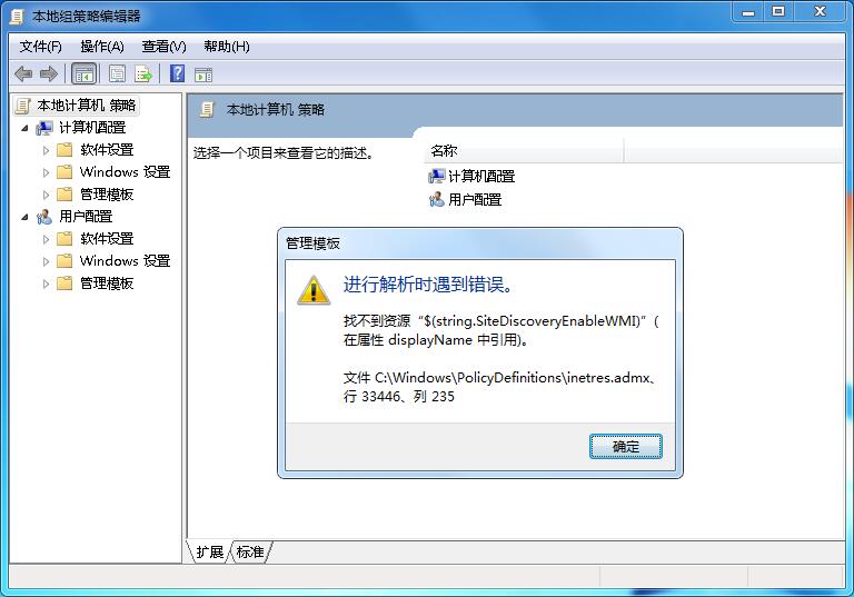 Win7組策略編輯器解析時遇